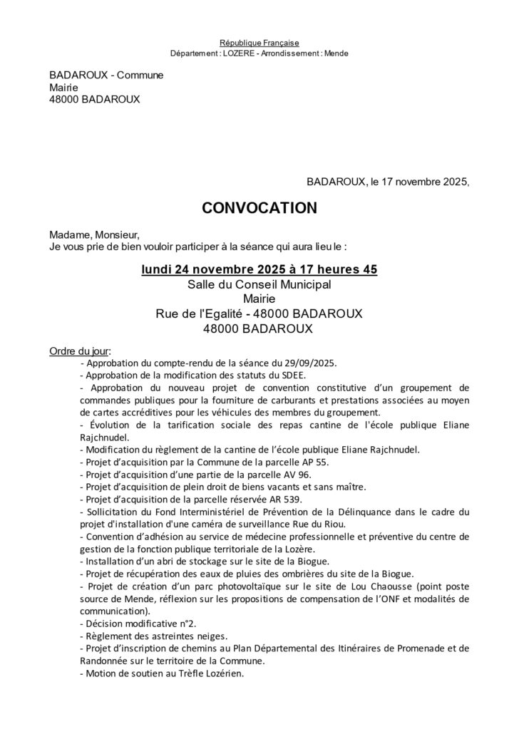 Approbation de la mise en compatibilité par déclaration de projet du plan local d’urbanisme de Badaroux : Construction d’un parc photovoltaïque au lieu-dit Lou Chaousse