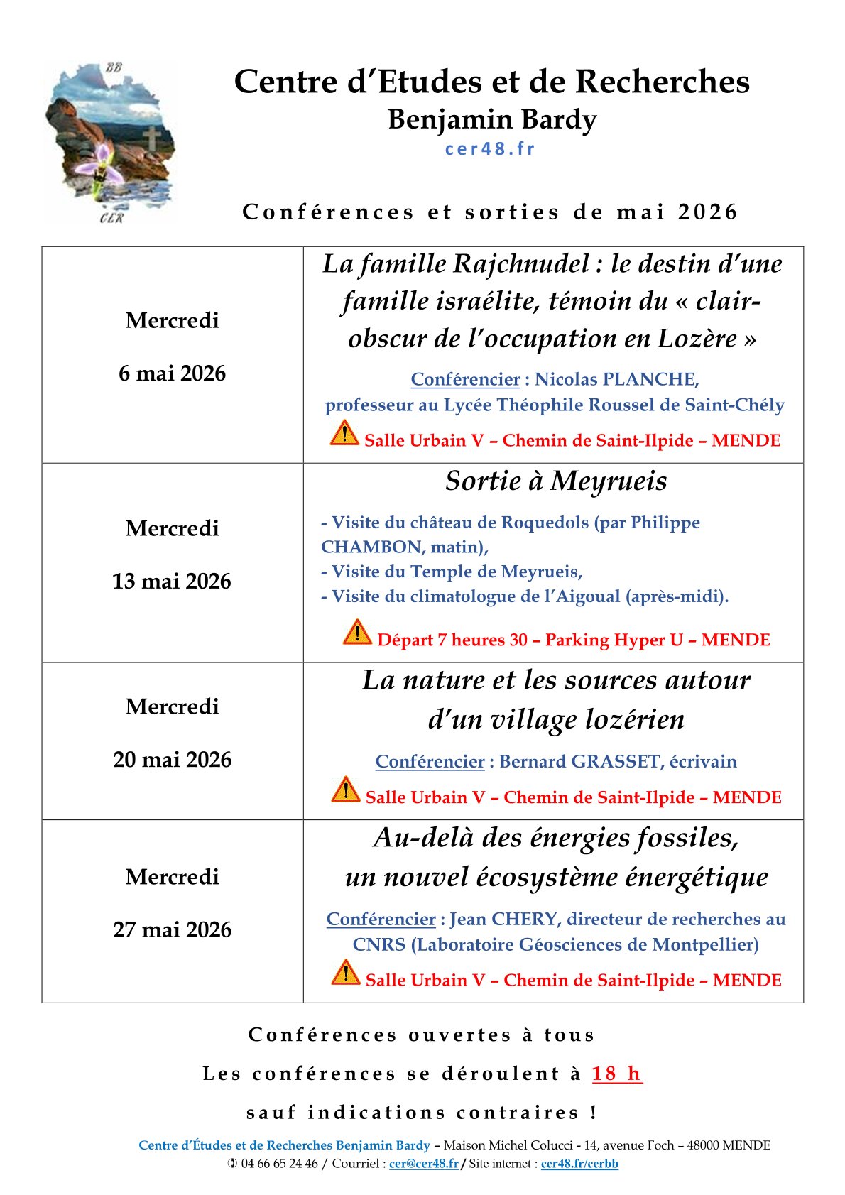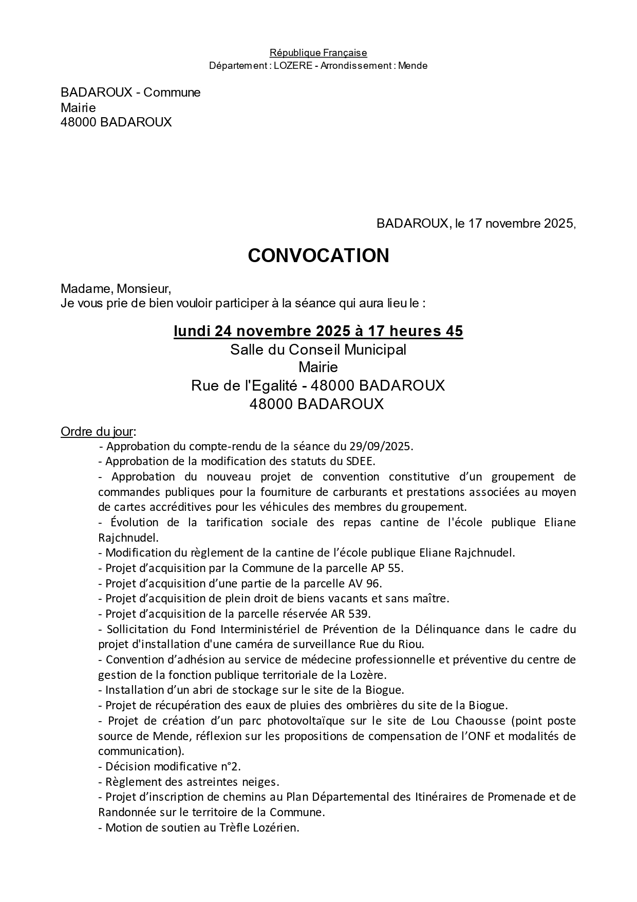 Vous pouvez rencontrer les Conseillers lors des permanences organisées les 3èmes mardis de chaque mois de 15h30 à 16h30 à la mairie de Badaroux.