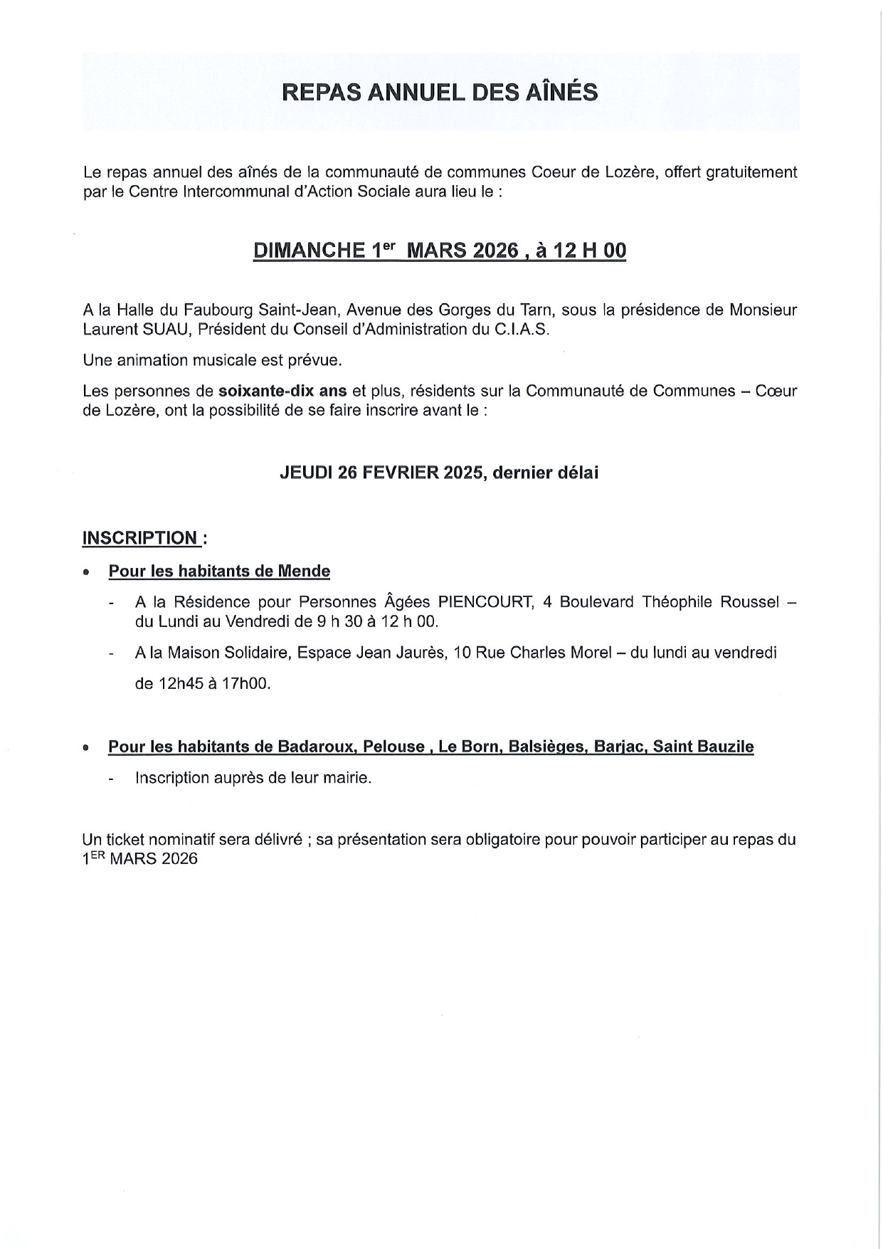 Organisé par le CIAS Coeur de Lozère le 1er mars 2026.