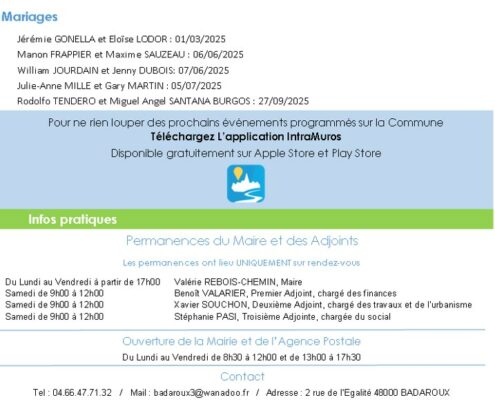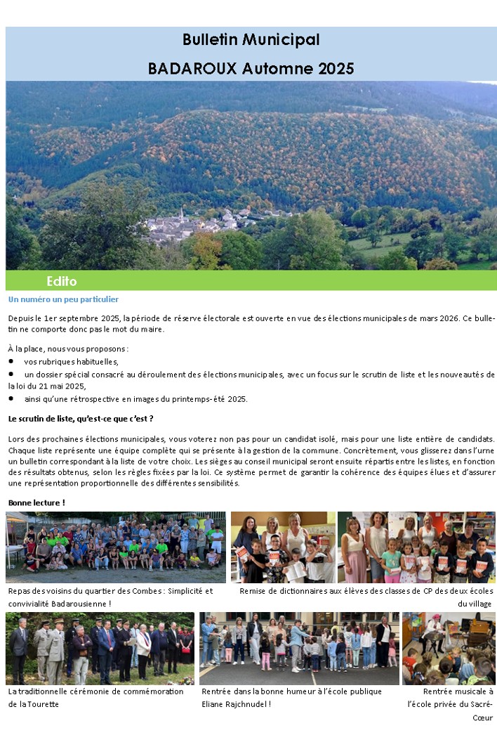 Retrouvez ici le dernier Bulletin municipal de la commune de Badaroux ! Cliquez sur le bouton ci dessous pour le télécharger